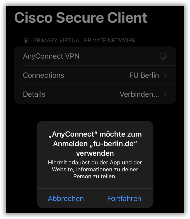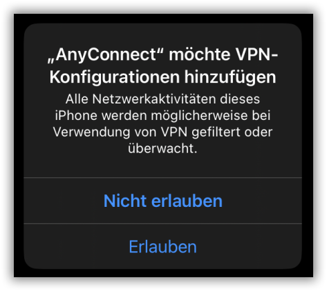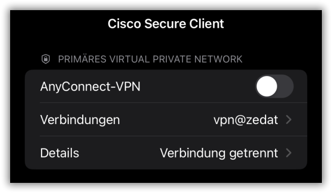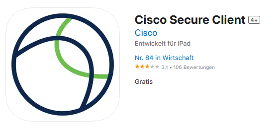 Hinweis: Seit Version 5.0 heißt "Cisco AnyConnect" jetzt "Cisco Secure Client". Sie benötigen mindestens iOS/ipadOS Version 10 und höher.